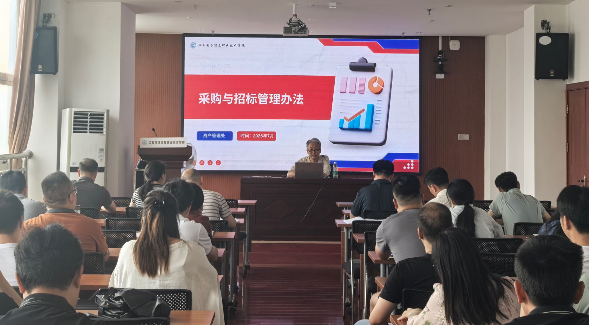 会上,资产管理处负责人结合学校实际工作需求,对《学校采购需求管理办法细则》等文件进行了系统解读。他通过政策解析、案例剖析和流程演示,深入浅出地讲解了采购需求编制、招标程序规范、风险防控要点等关键内容,并针对日常采购工作中的常见问题提供了专业指导。