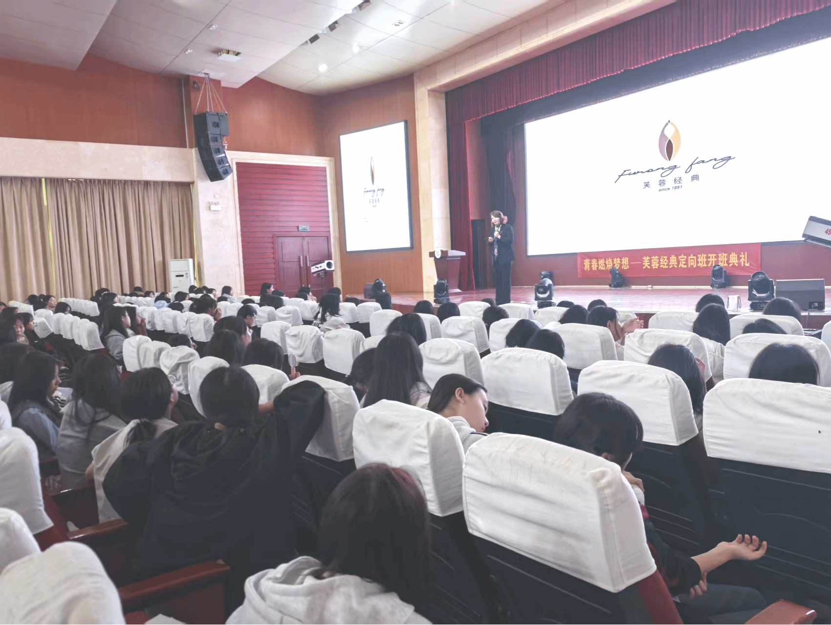 开班典礼结束后,企业方安排了从风采展示到竞技游戏的丰富环节,极大地激发了学生们的参与热情。企业副总李霞还为同学们讲解了《目标-达成-计划》,现场指导大家科学制定目标,分解达成方案,并分享了实用的“养成好习惯、改掉坏习惯”的方法与技巧。谢小钰老师为同学们带来了《芙蓉经典企业文化》课程,提升了大家对企业的认知;而《遇见更好的自己》讲座更是让大家对未来充满无限希望。